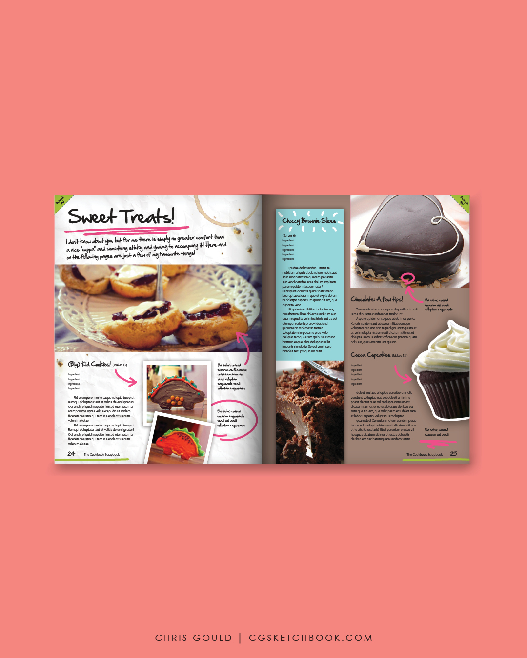 Self initiated book concept and sample layout for “The Cookbook Scrapbook” concept