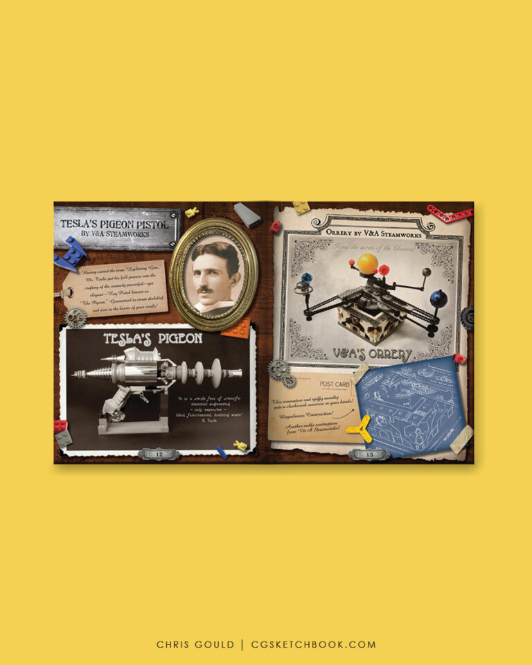 Commissioned spread styling and sample layout for No Starch Press’ “Steampunk Lego”