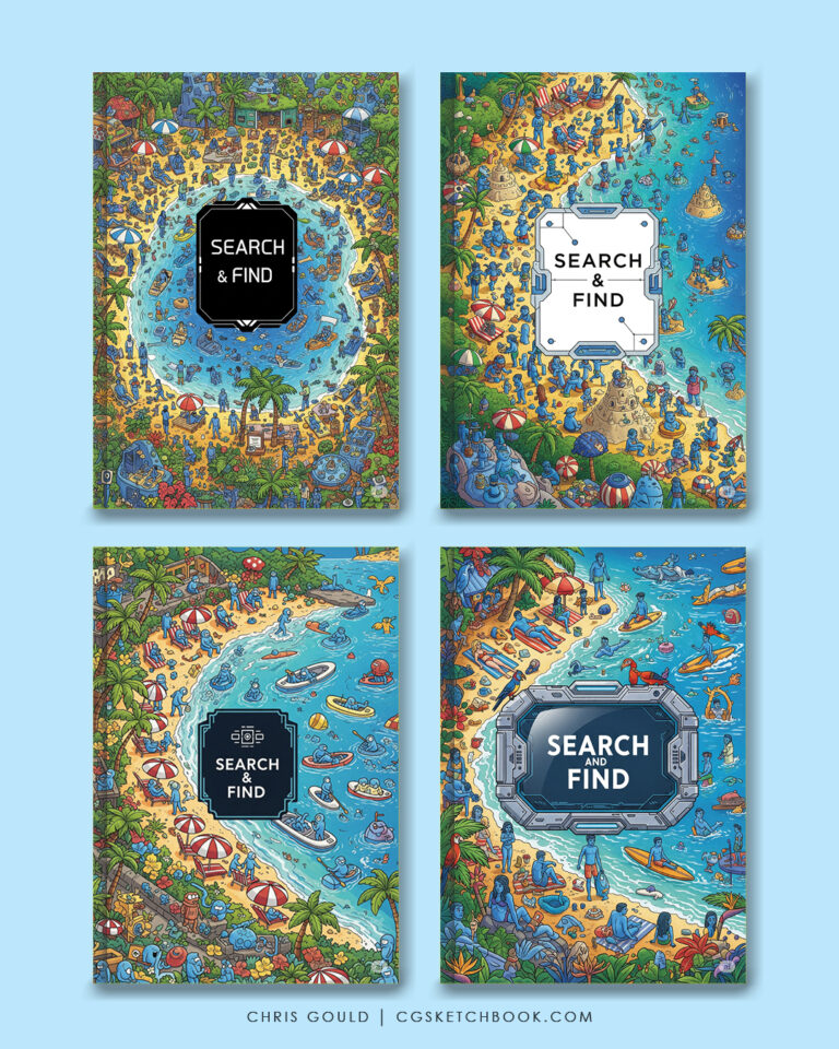 Initial cover development using AI prompts for Seek & Find concept